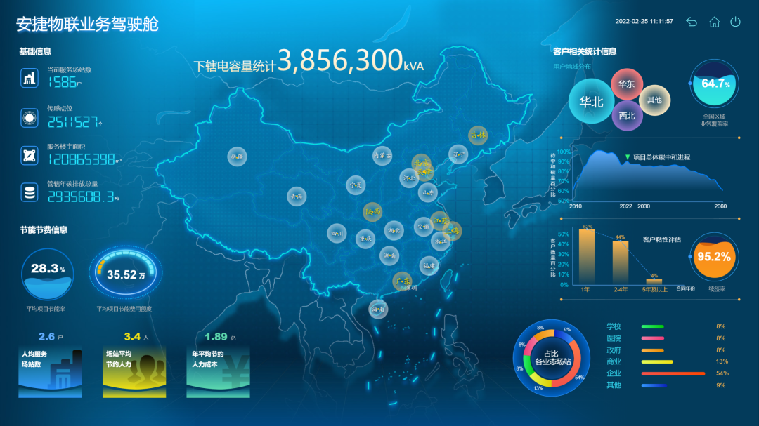 依托本成果,3003.com新葡的京集团物联成为国内首家通过BSI(英国标准协会)认证(基于PAS 2060:2014标准实现碳中和)的综合能源解决方案提供商,截至2021年10月,本成果已服务包括国家会展中心(天津)、西安曲江开发区、北京亦庄科技新城、北京大学等全国一千余家用户,覆盖大型公共建筑、商业地产、酒店、轨道交通等领域。应用楼宇面积超1亿平米,可学习、可分析、可预测、可决策,能够帮助用户将楼宇保持在最健康的状态,同时使楼宇内的用户体验达到最佳,可节约运行成本50%以上,节省系统维护费用20%以上,降低能耗15%以上,降低碳排放超百万吨。